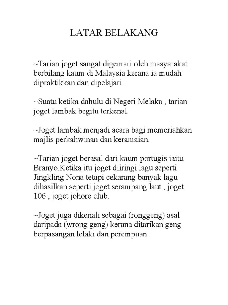 Tarian tradisional melayu joget dance traditional modern tradisional melayu. Lagunya dikatakan telah digubah di atas titah . Tarian mak inang dicipta semasa zaman kesultanan melayu melaka. Mengikut sejarah, lagu dan tarian mak inang berasal daripada zaman kesultanan melaka. Tempo lagu tarian inang bercorak sederhana . Tempo lagu tarian inang bercorak sederhana dan tidak perlahan . Asal usul tarian inang docx pdfcoffee com . Alat muzik yang digunakan untuk tarian inang ialah gong, akordian , violin, gendang dan rebana.